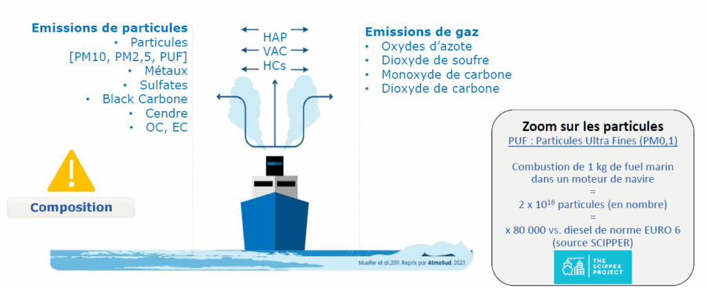 Les principaux impacts sanitaires de la pollution atmosphérique à Marseille sont dus aux émissions de dioxyde d’azote (NO₂) et de particules fines PM2,5 provenant du résidentiel, du transport routier et du maritime. Photo : Canva